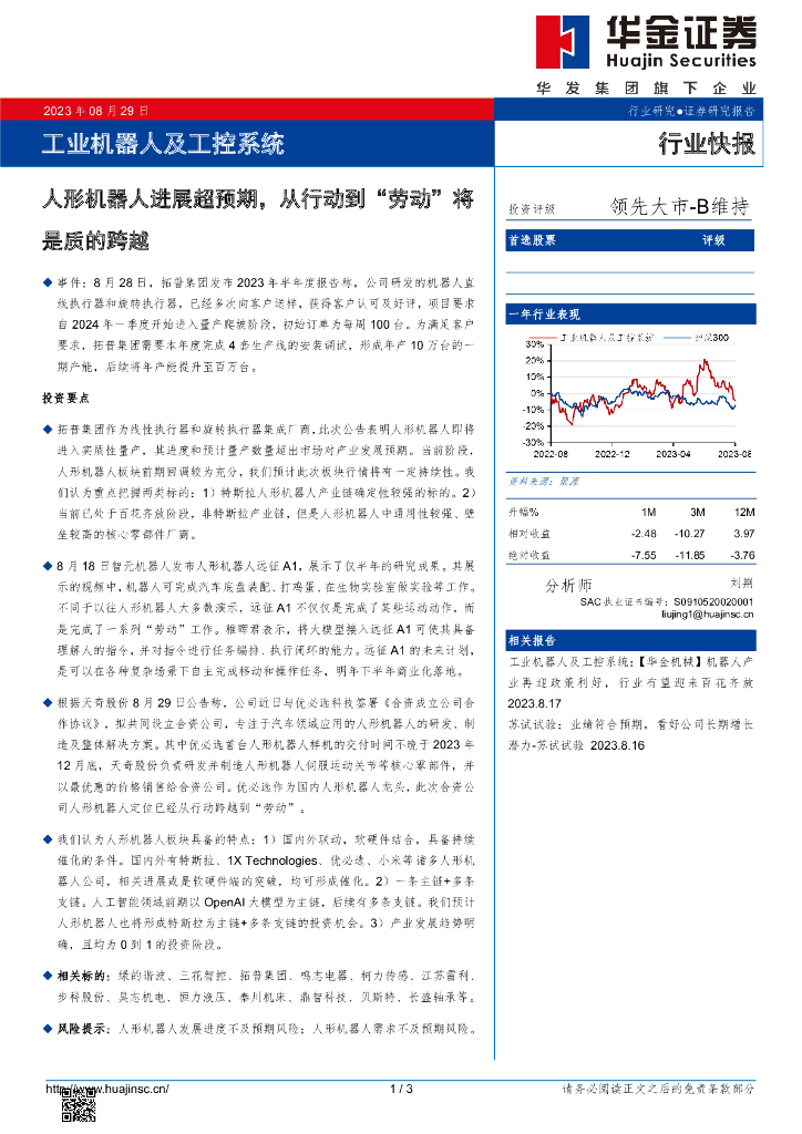 华金证券:工业机器人及工控系统行业快报:人形机器人进展超预期,从行动到“劳动”将是质的跨越.pdf