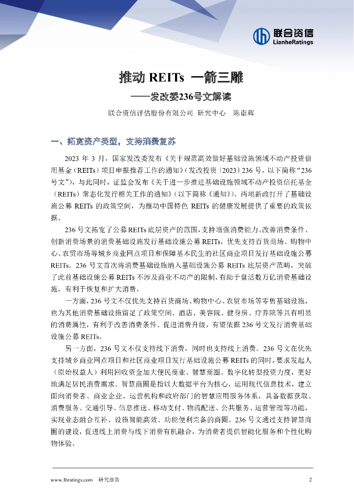 联合资信:推动REITs 一箭三雕——发改委236号文解读.pdf