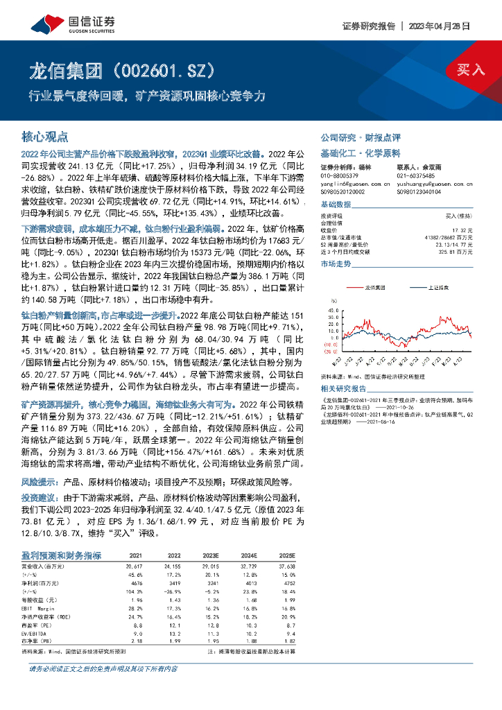 国信证券:龙佰集团(002601)-行业景气度待回暖,矿产资源巩固核心竞争力.pdf