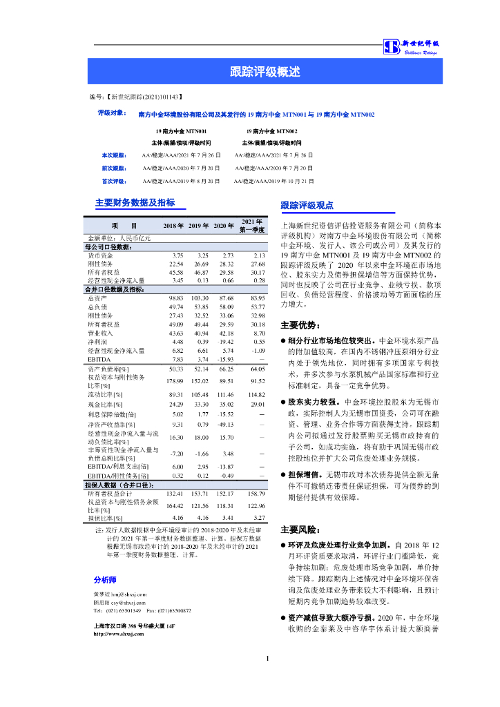 新世纪:南方中金环境股份有限公司信用评级报告.pdf