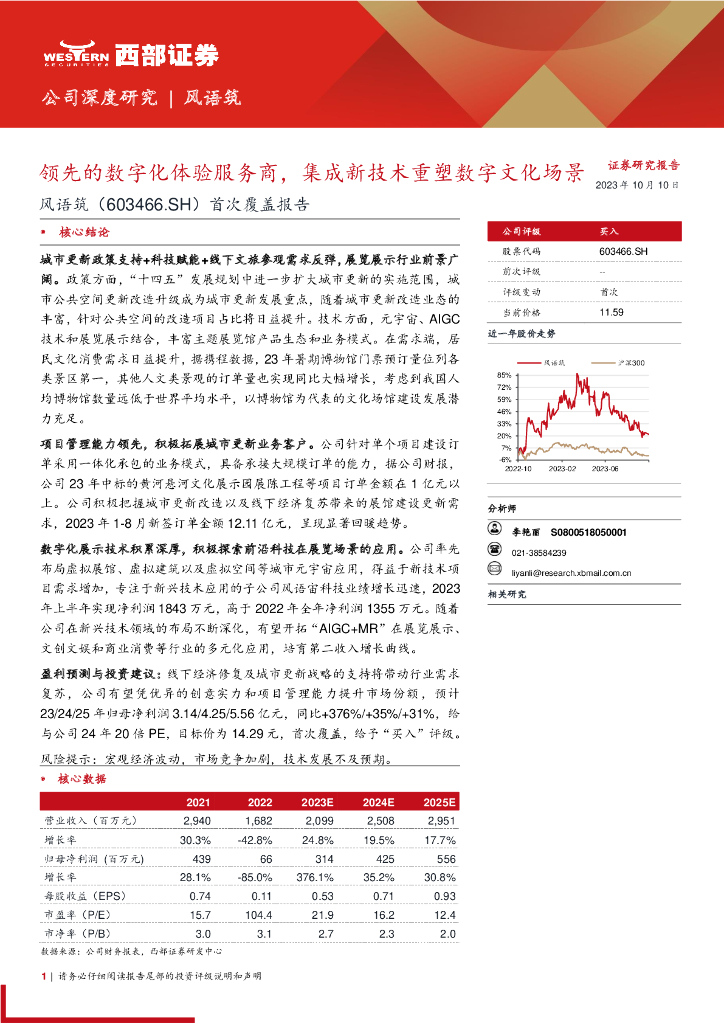 西部证券:风语筑-公司首次覆盖报告-领先的数字化体验服务商集成新技术重塑数字文化场景-231010.pdf