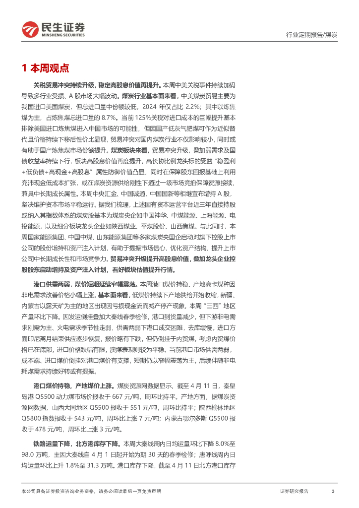 民生证券:煤炭周报:关税贸易冲突持续升级,稳定高股息价值再提升.pdf