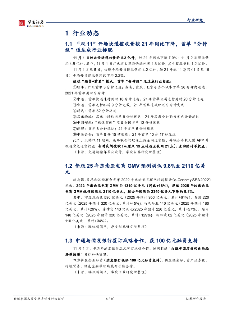 华安证券:物流行业周报:“双11”首日快递揽收量同比下滑7%,新版东南亚2025年电商规模预测调低9.8%.pdf
