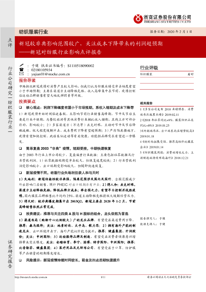 浙商证券:新冠对纺服行业影响点评报告:新冠较非典影响范围较广,关注成本下降带来的利润超预期.pdf