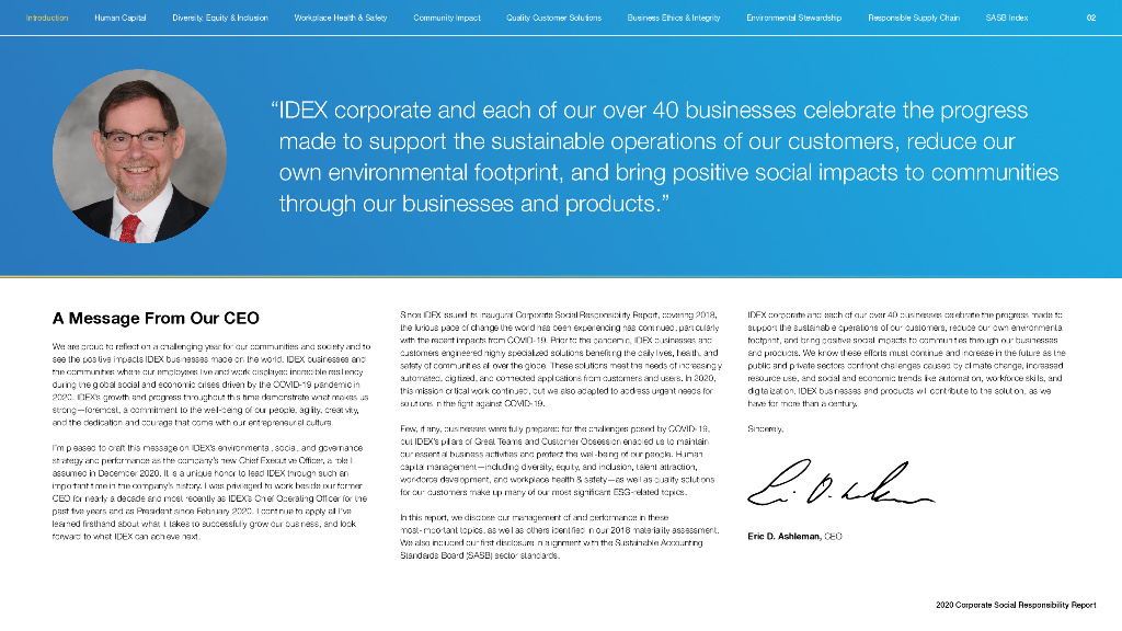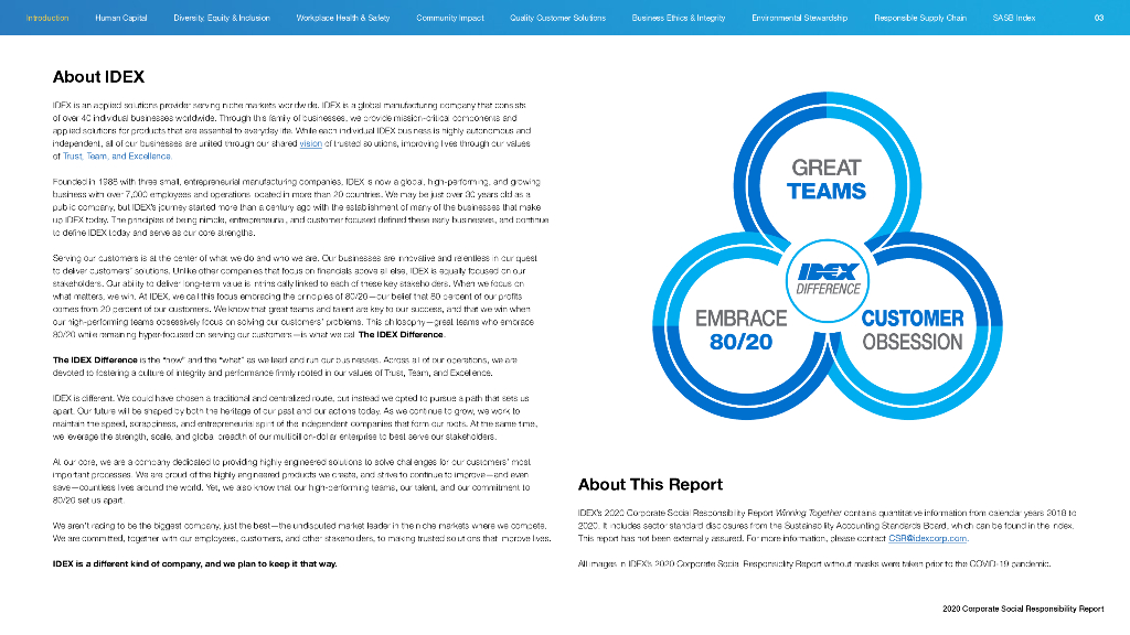 IDEX Corporation(IEX)2020年企业社会责任报告(英文版).pdf