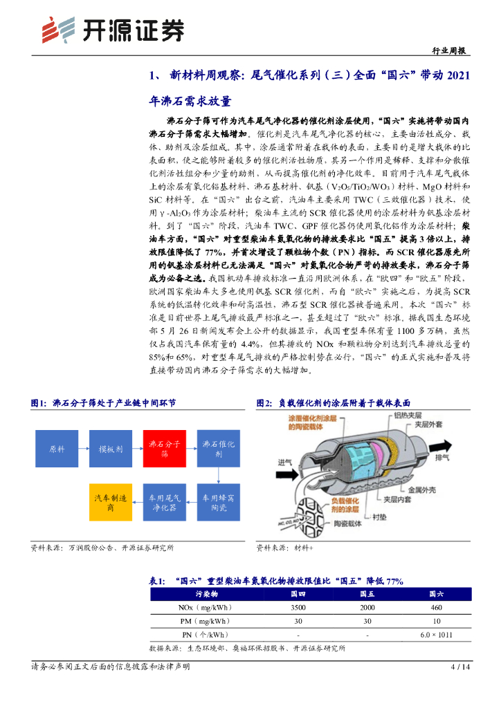 开源证券:新材料行业周报:尾气催化系列三:全面“国六”带动2021年沸石需求放量.pdf