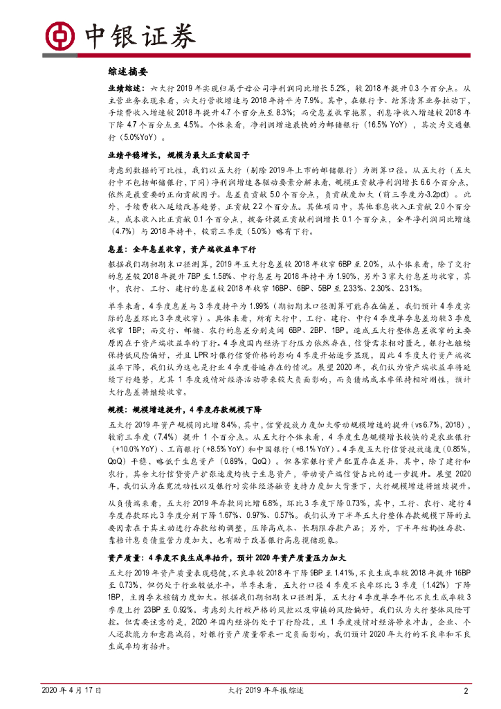 中银证券:银行:大行2019年年报综述-业绩平稳增长,关注资产质量走势.pdf