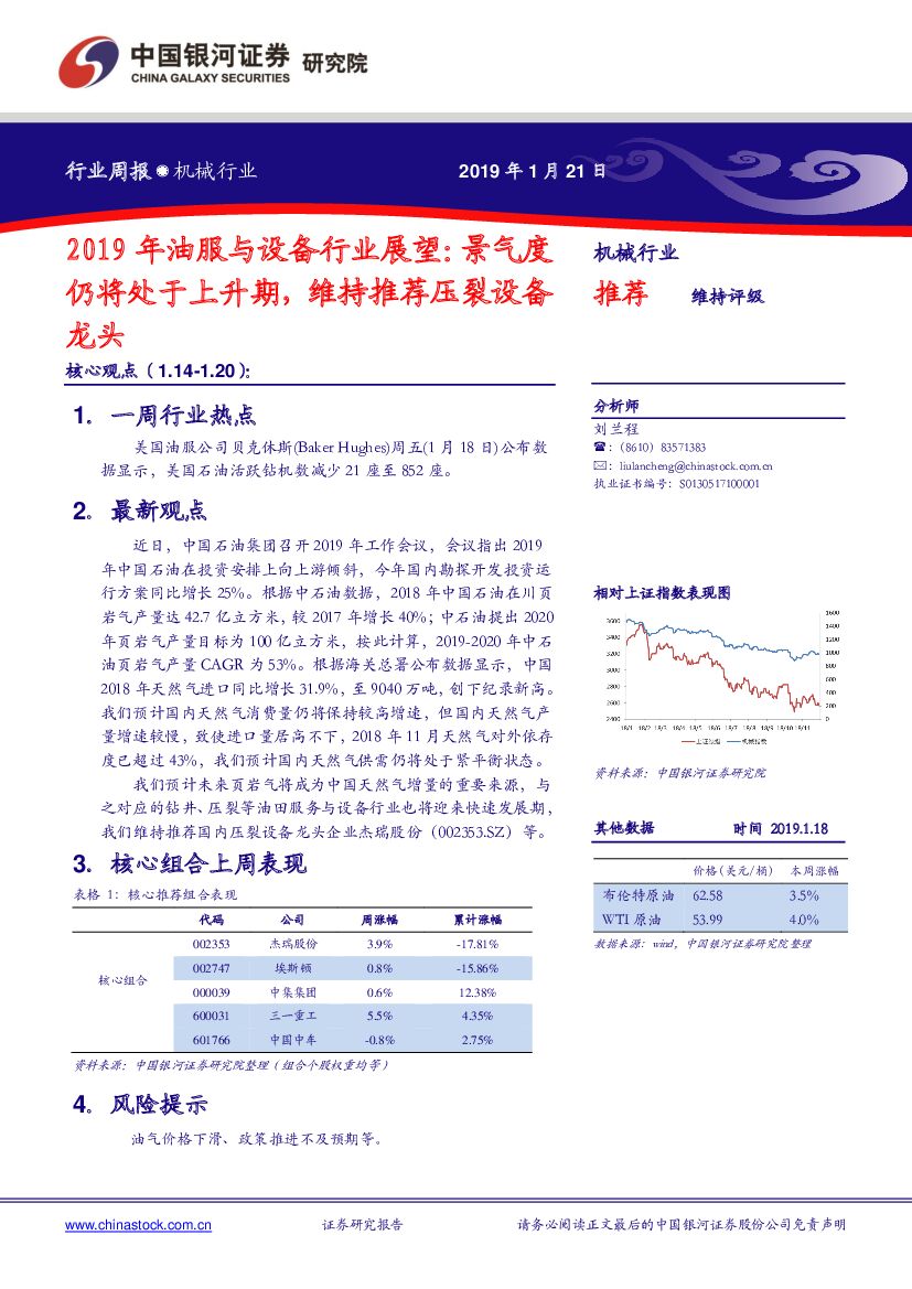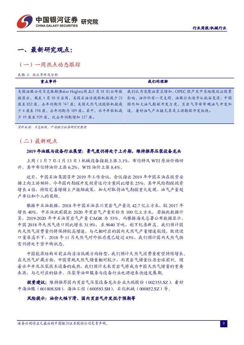 中国银河:机械行业周报:2019年油服与设备行业展望:景气度仍将处于上升期,维持推荐压裂设备龙头.pdf