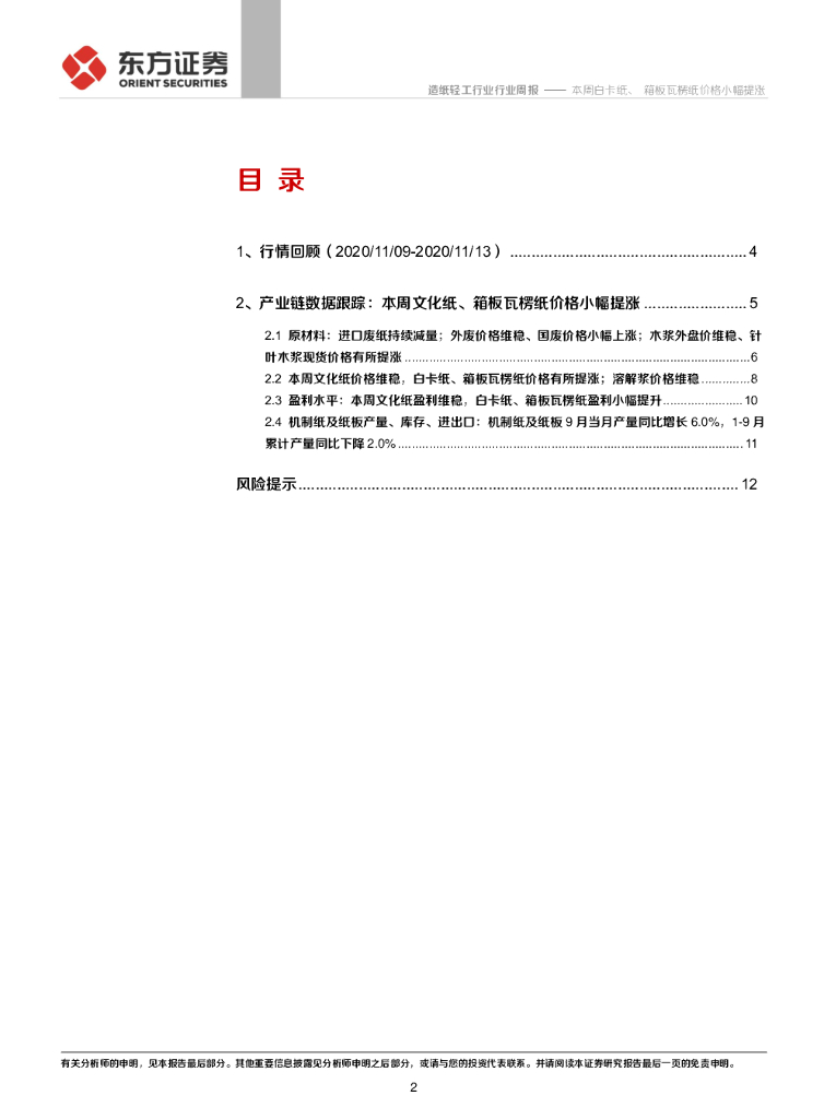 东方证券:造纸产业链数据每周速递:本周白卡纸、箱板瓦楞纸价格小幅提涨.pdf