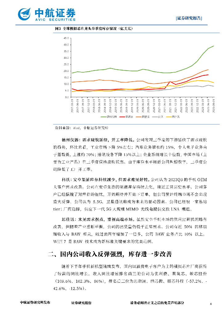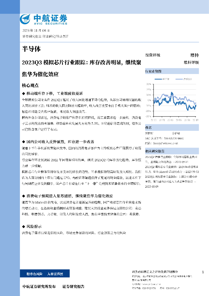 中航证券:2023Q3模拟芯片行业跟踪:库存改善明显,继续聚焦华为催化效应.pdf
