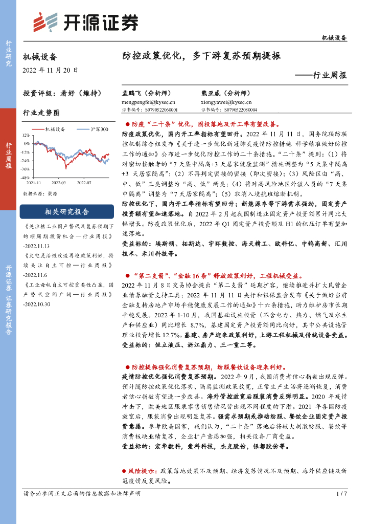 开源证券:机械设备行业周报:防控政策优化,多下游复苏预期提振.pdf