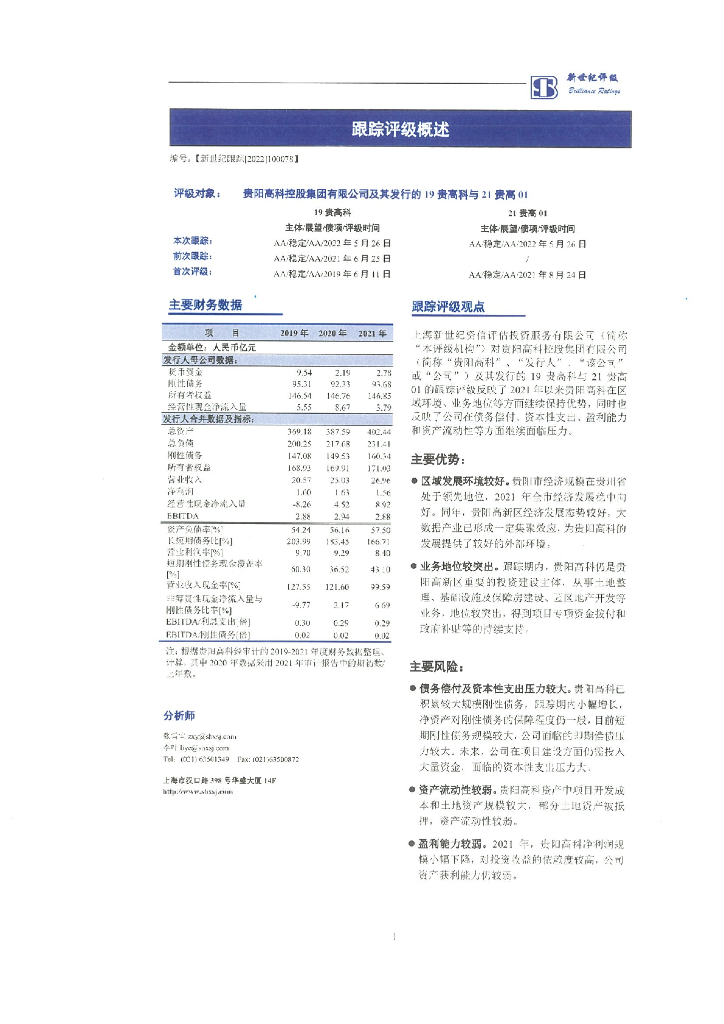 新世纪:贵阳高科控股集团有限公司及其发行的19贵高科与21贵高01跟踪评级报告.pdf