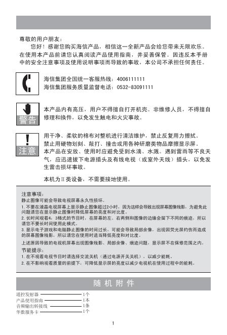 海信 液晶电视 LED32K310X3D系列 产品使用指南.pdf
