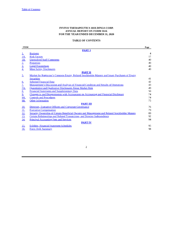 Invivo Therapeutics Holdings Corp(NVIV)2020财年年度报告(英文版).pdf