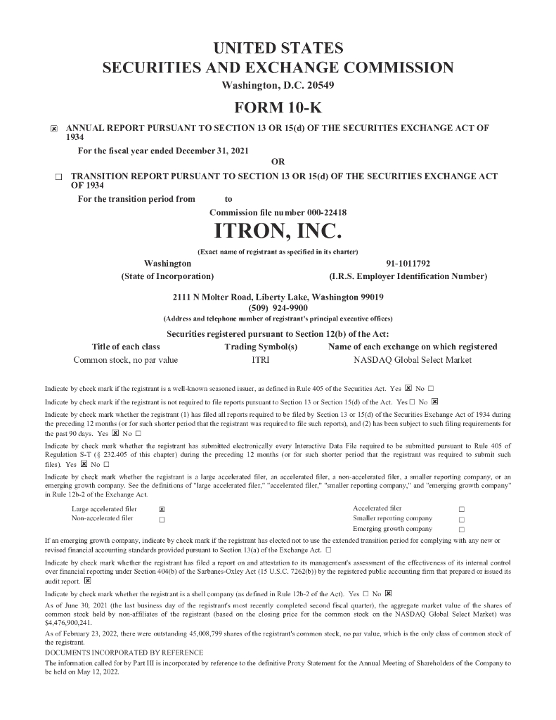 Itron, Inc.(ITRI)2021财年年度报告(英文版).pdf