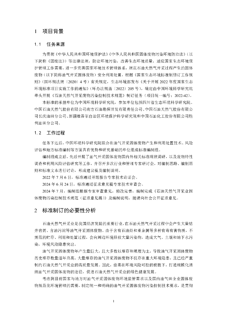石油天然气开采业固体废物污染控制技术规范(征求意见稿)编制说明.pdf