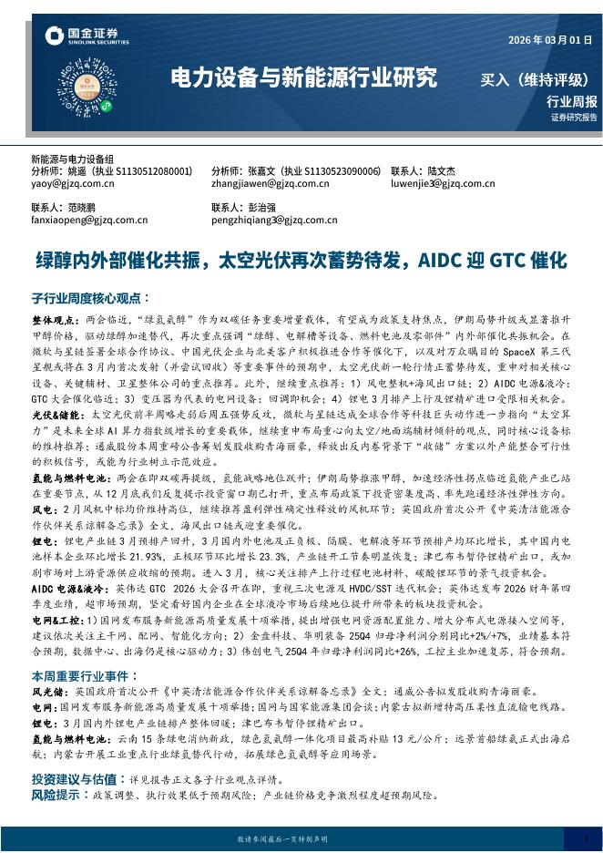 国金证券:电力设备与新能源行业研究:绿醇内外部催化共振,太空光伏再次蓄势待发,AIDC迎GTC催化.pdf