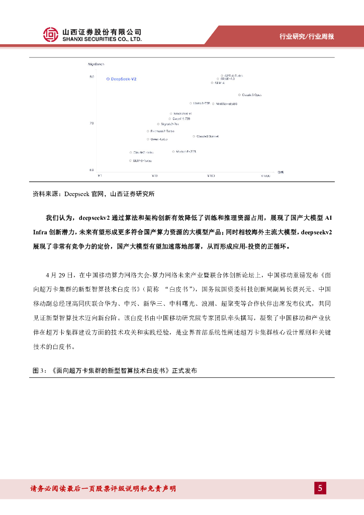 山西证券:通信周跟踪:DeepSeek-V2发布展现国产大模型实力,国产万卡级群迎新投资机会.pdf
