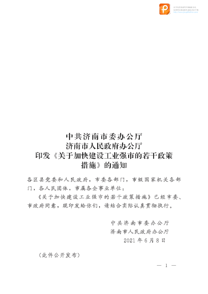 济南市人民政府:关于加快建设工业强市的若干政策措施.pdf