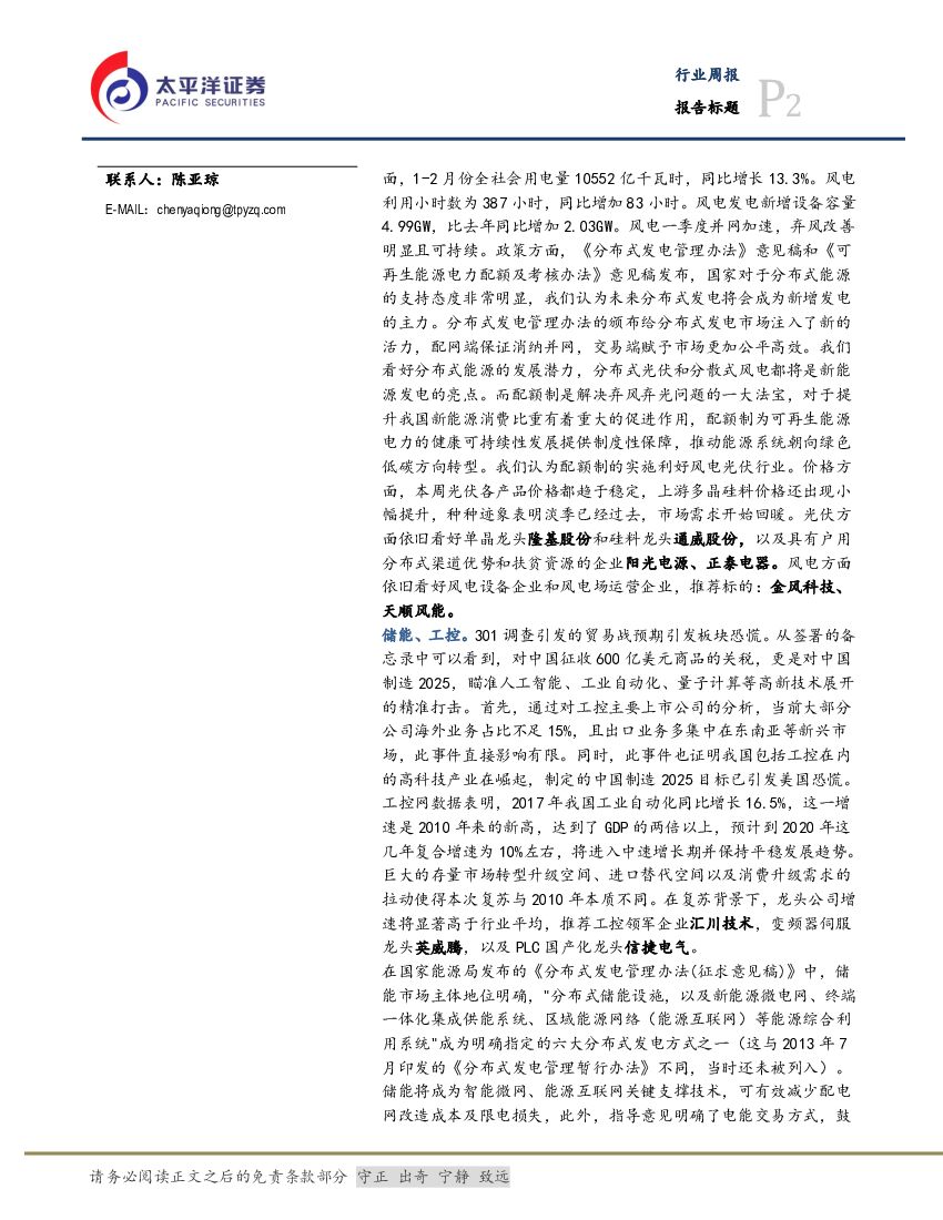 太平洋证券:电气设备周报:新能源1-2月份数据向好,分布式、配额制政策频发助增长.pdf