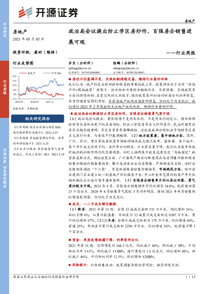 开源证券:房地产行业周报:政治局会议提出防止学区房炒作,百强房企销售进展可观.pdf