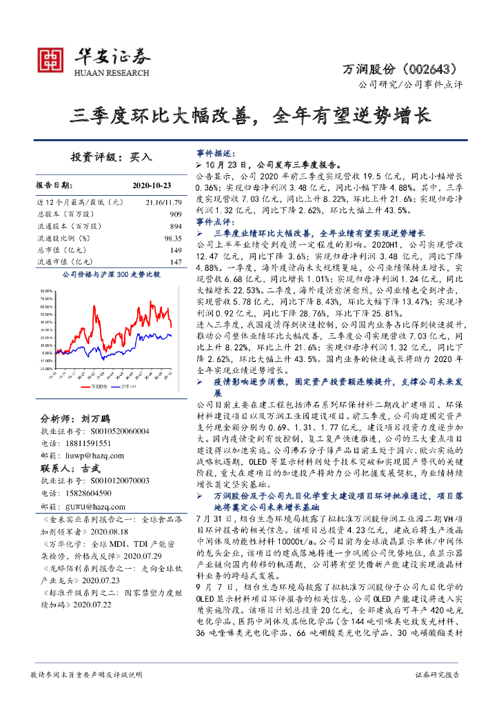 华安证券:万润股份(002643)-三季度环比大幅改善,全年有望逆势增长.pdf
