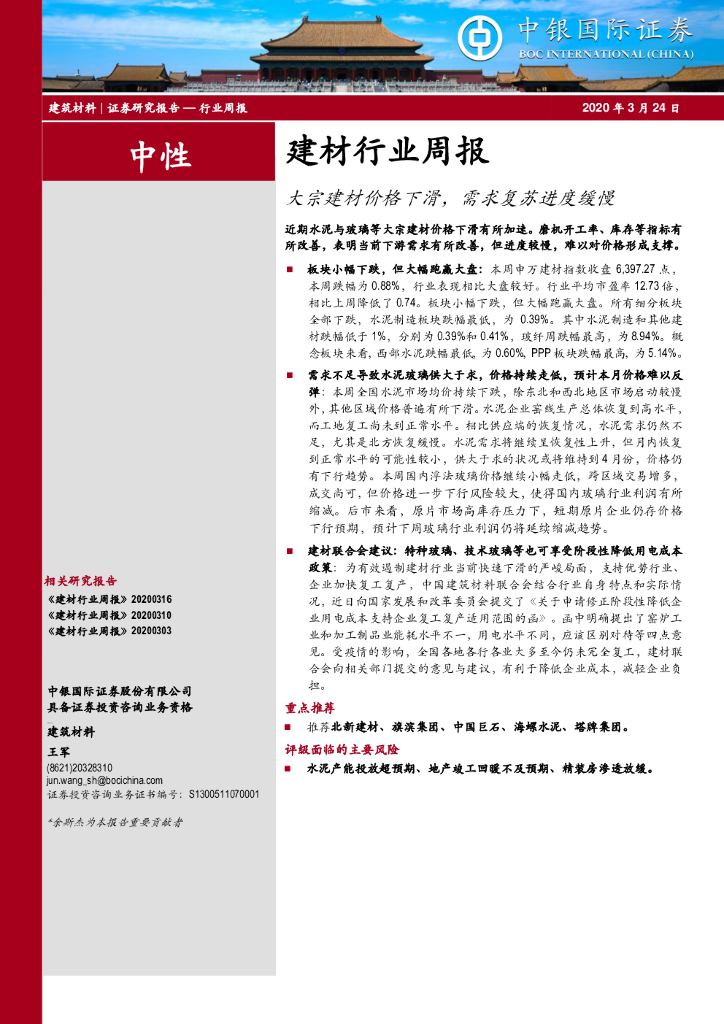 中银证券:建材行业周报:大宗建材价格下滑,需求复苏进度缓慢.pdf