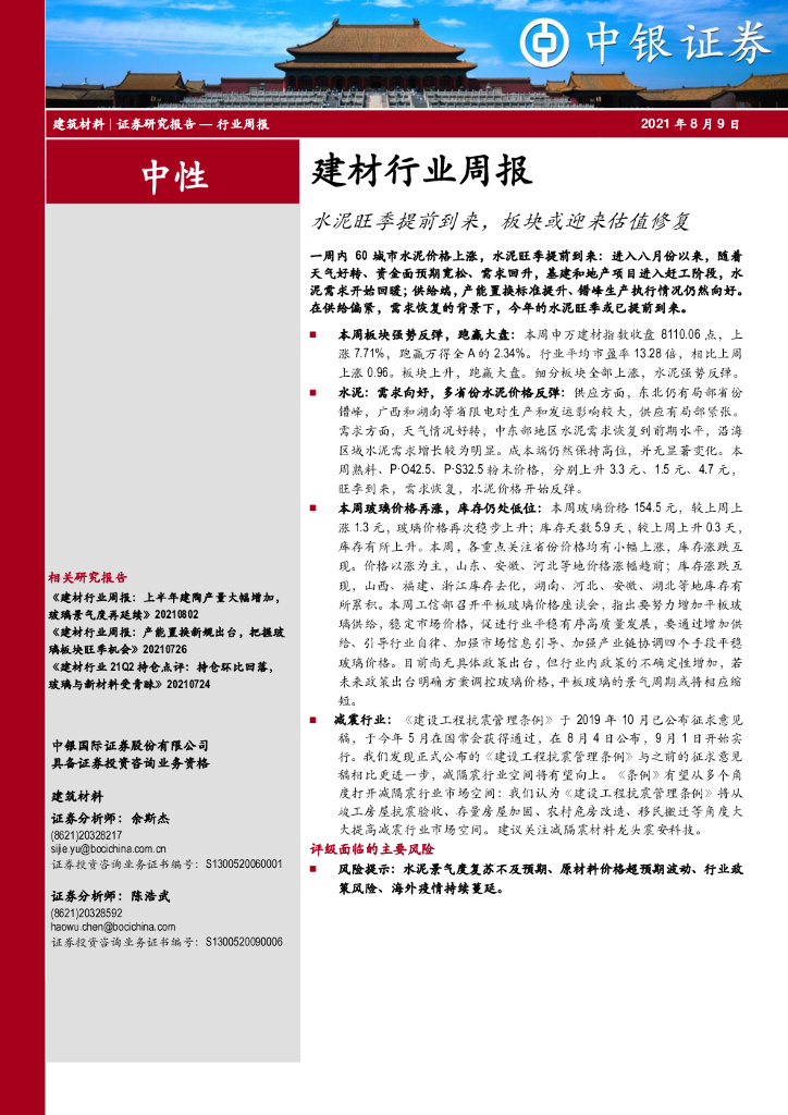 中银证券:建材行业周报:水泥旺季提前到来,板块或迎来估值修复.pdf