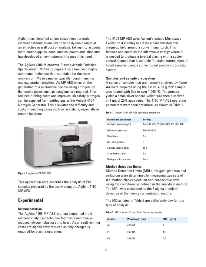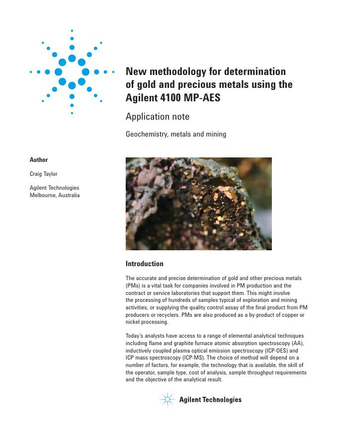 Agilent New methodology for determination of gold and precious metals using the Agilent 4100 MP-AES 数据手册.pdf