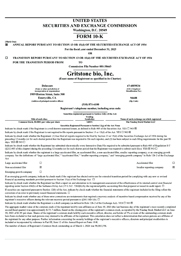 Gritstone Oncology, Inc.(GRTS)2023财年年度报告(英文版).pdf