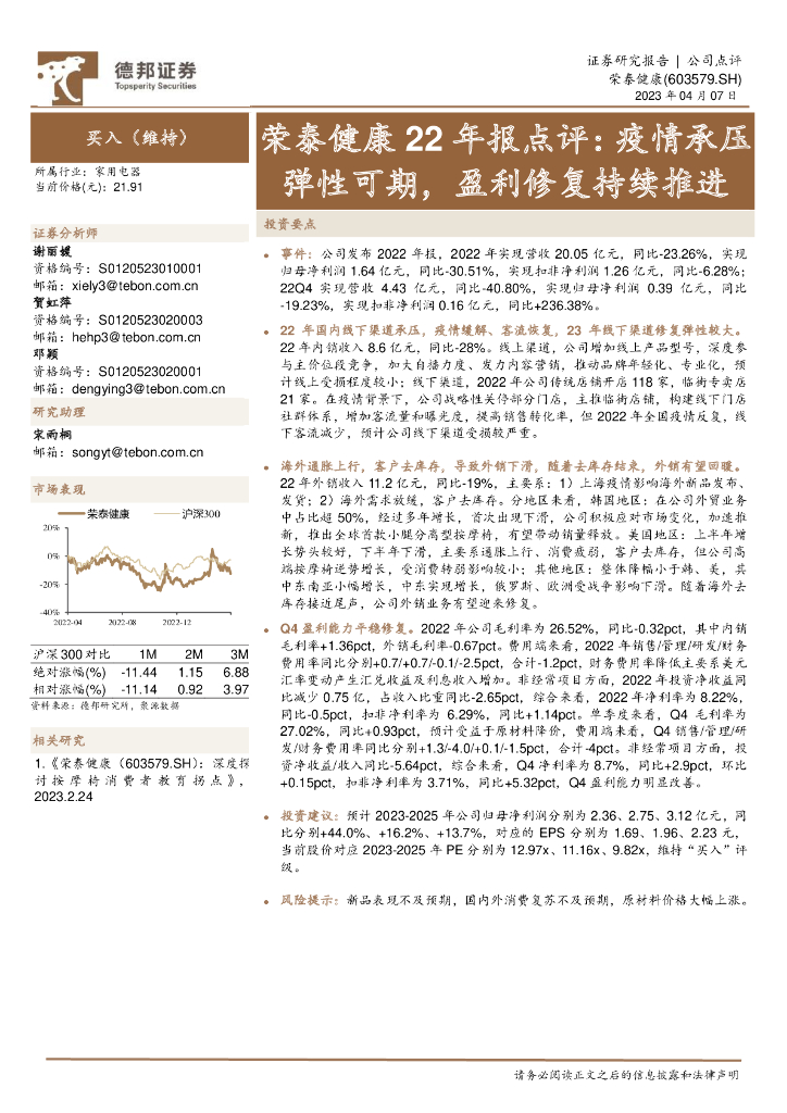 德邦证券:荣泰健康22年报点评:疫情承压弹性可期,盈利修复持续推进.pdf