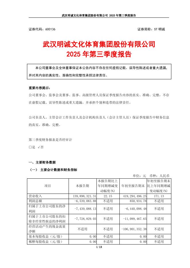 600136-ST明诚:公司2025年第三季度报告.pdf