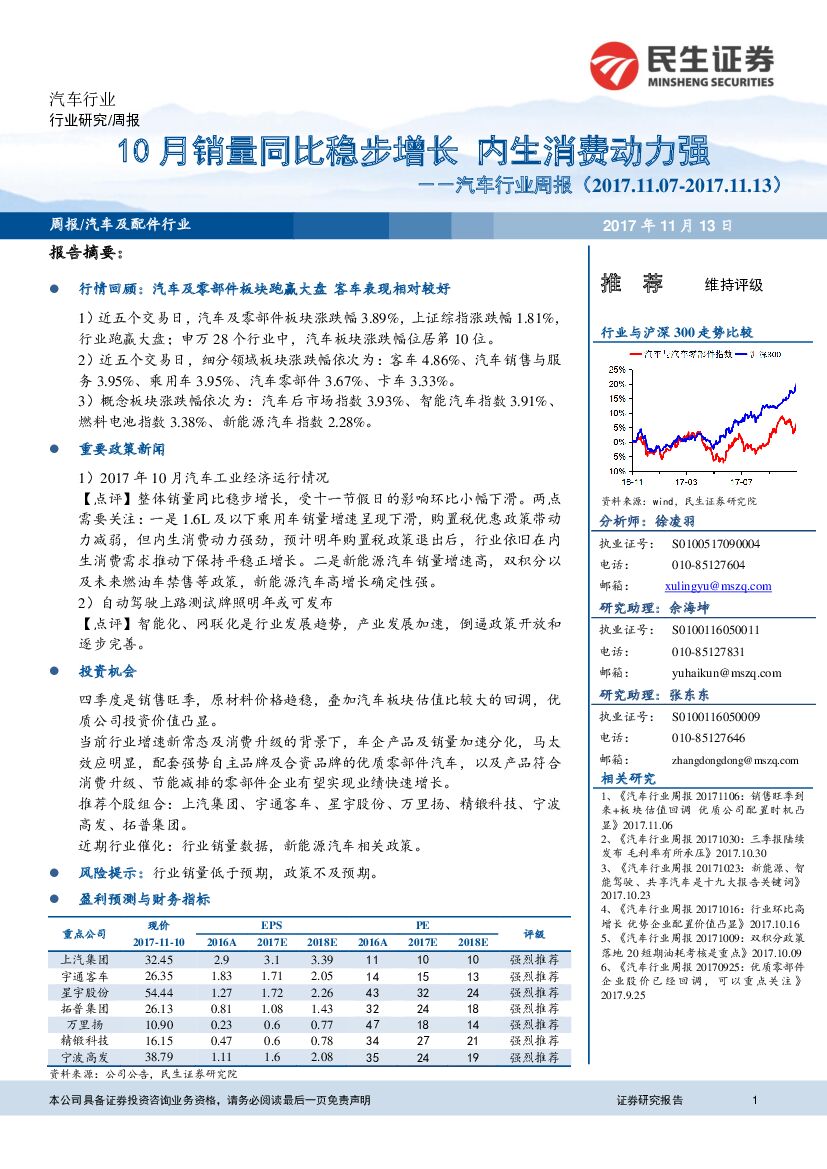 民生证券:汽车行业周报:10月销量同比稳步增长 内生消费动力强.pdf