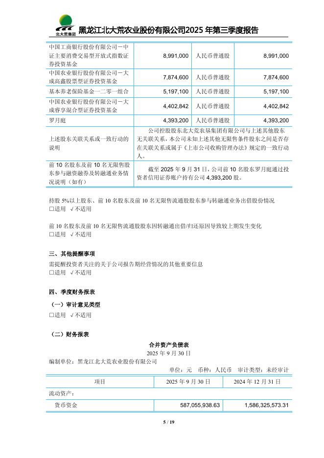 600598-北大荒:黑龙江北大荒农业股份有限公司2025年第三季度报告.pdf