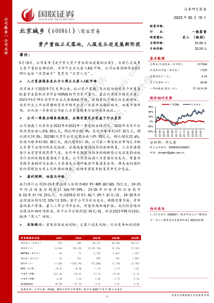 国联证券:北京人力(600861)-资产重组正式落地,人服龙头迎发展新阶段.pdf
