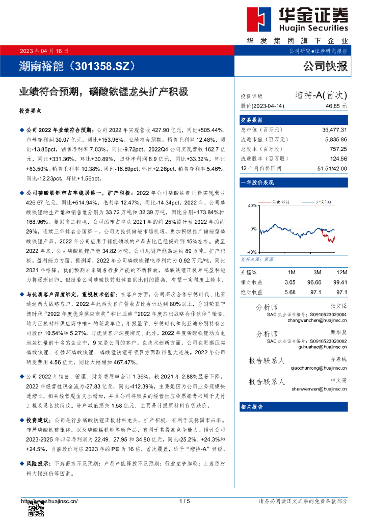 华金证券:湖南裕能(301358)-业绩符合预期,磷酸铁锂龙头扩产积极.pdf