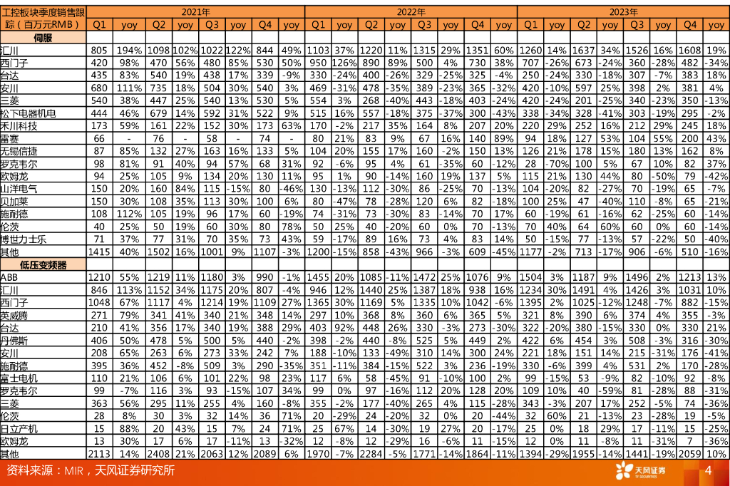 天风证券:机械设备:工控板块2023年分季度销售数据更新.pdf