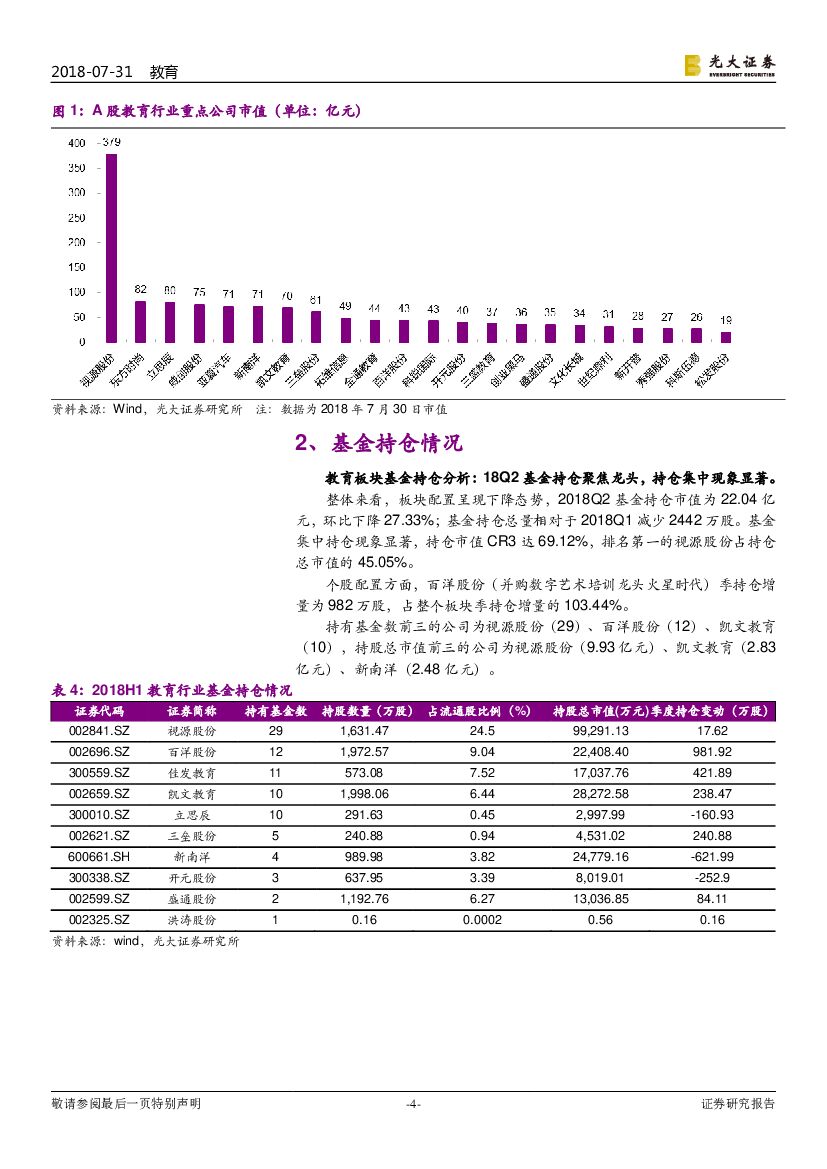光大证券:教育行业重大事项点评之九:18H1中报业绩快速增长,18Q2基金持仓聚焦龙头.pdf