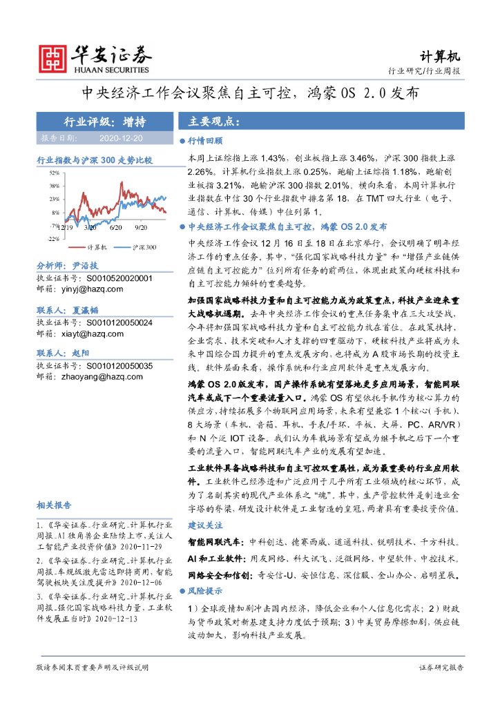 华安证券:计算机行业周报:中央经济工作会议聚焦自主可控,鸿蒙OS2.0发布.pdf