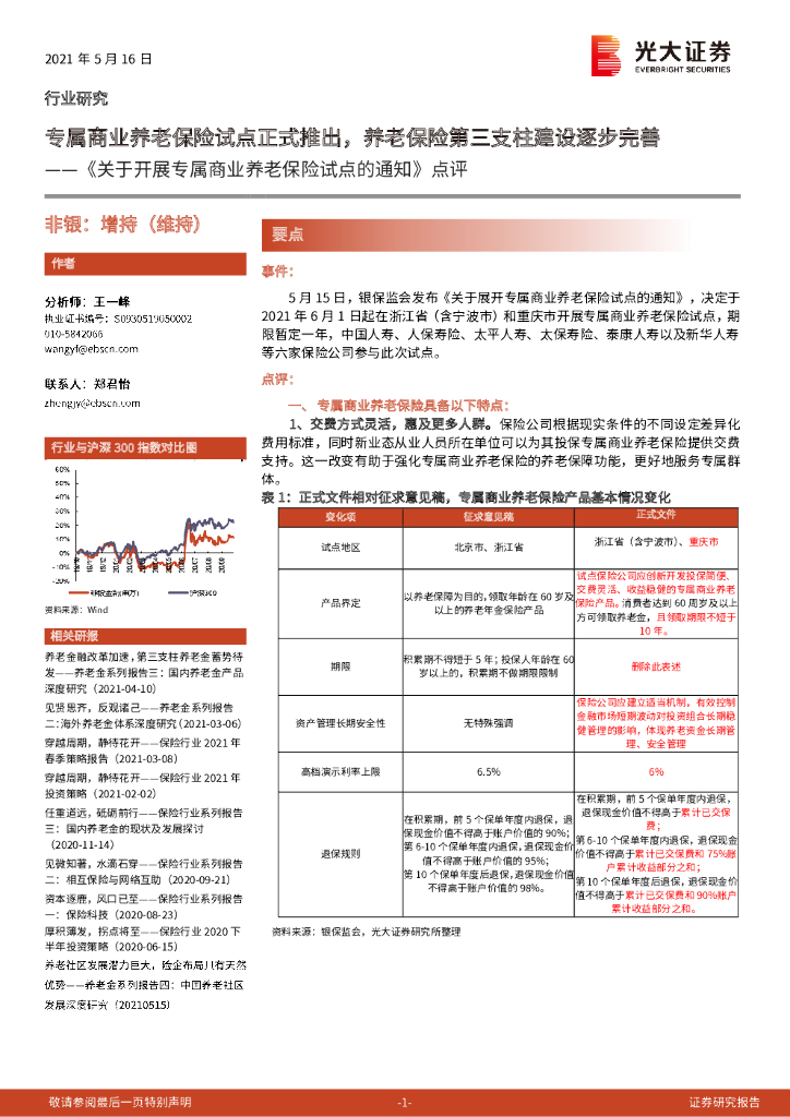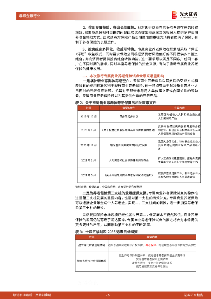 光大证券:《关于开展专属商业养老保险试点的通知》点评:专属商业养老保险试点正式推出,养老保险第三支柱建设逐步完善.pdf