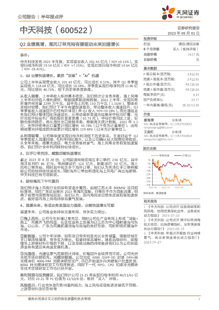 天风证券:中天科技(600522)-Q2业绩高增,海风订单充裕有望驱动未来加速增长.pdf