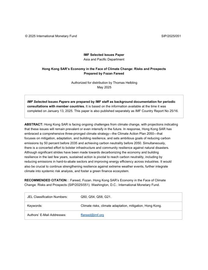 国际货币基金组织:香港特区经济面对气候变化的风险与展望(英文版).pdf