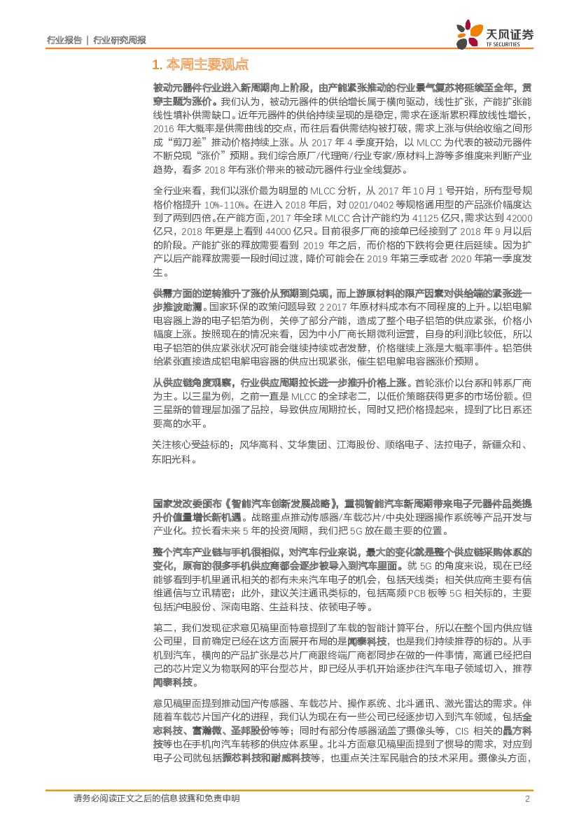 天风证券:电子制造行业研究周报:电子元件与智能汽车新周期.pdf