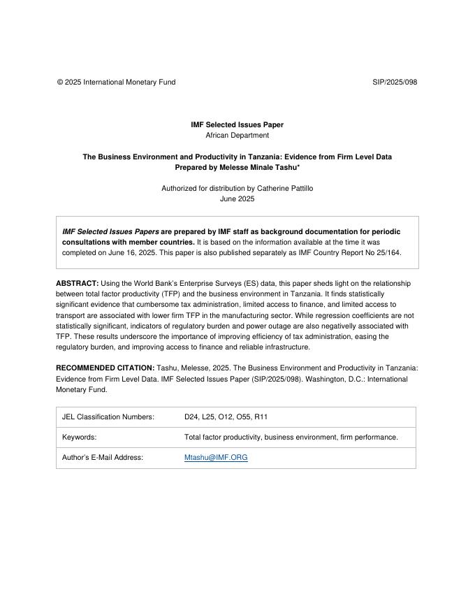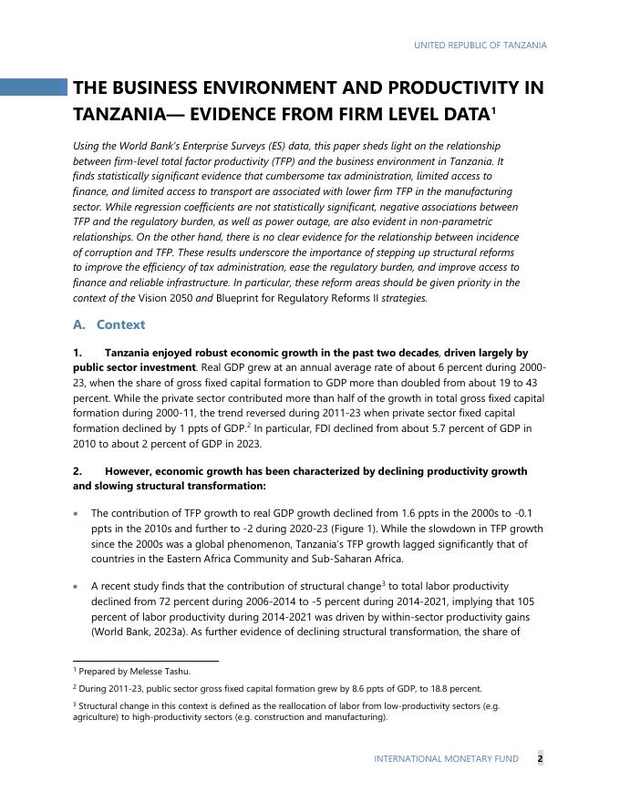 国际货币基金组织:坦桑尼亚的商业环境和生产力:来自企业层面数据的证据(英文版).pdf