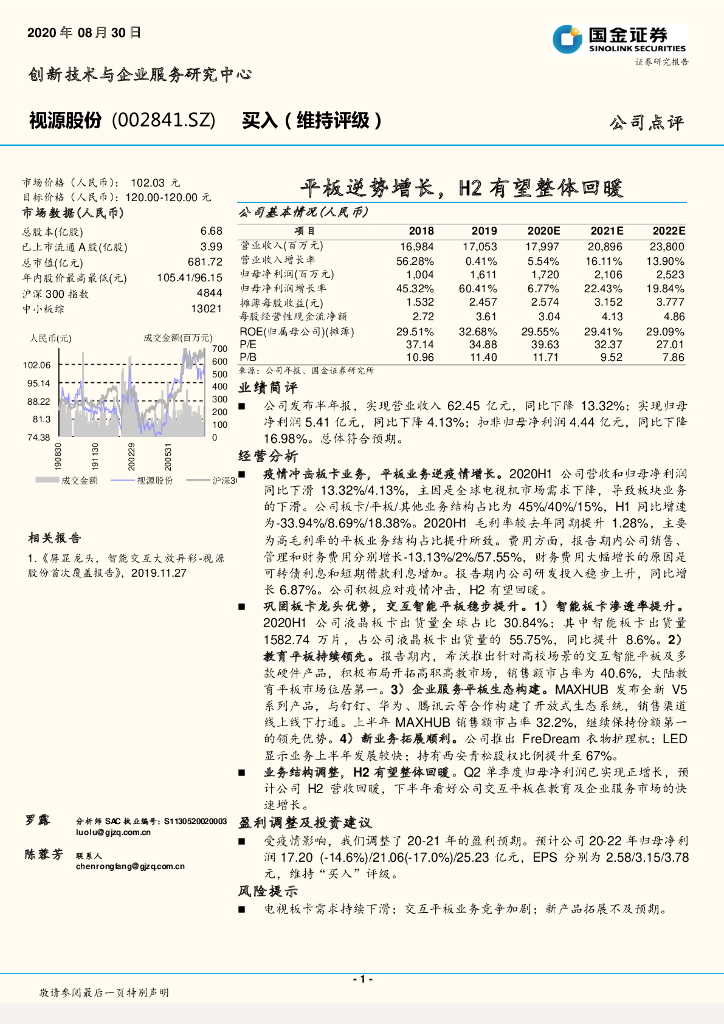 国金证券:视源股份(002841)-平板逆势增长,H2有望整体回暖.pdf