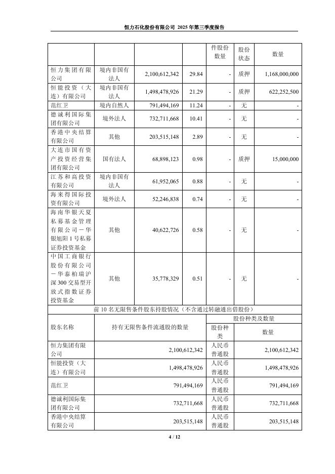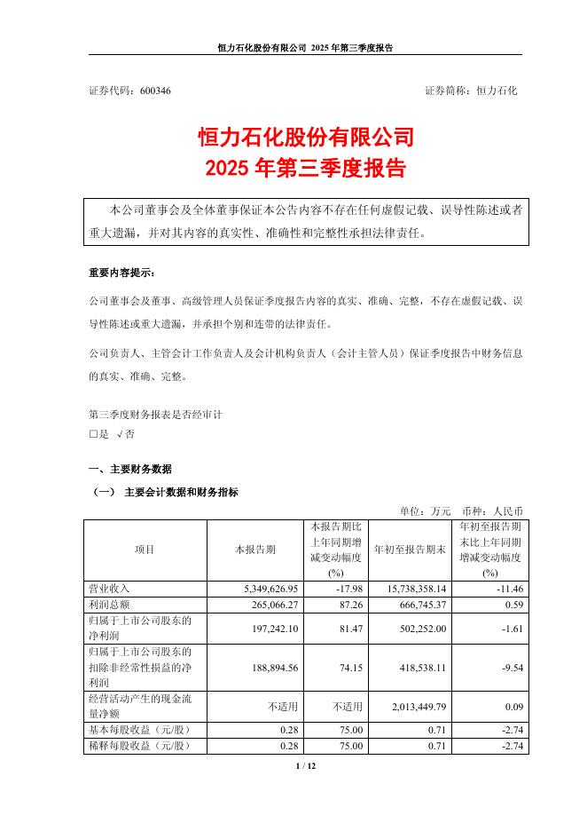 600346-恒力石化:恒力石化2025年第三季度报告.pdf