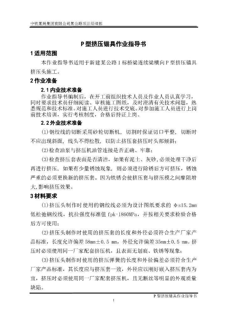 桥梁连续梁横向P型挤压锚具作业指导书.doc