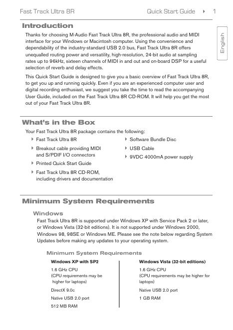 M-AUDIO Fast Track Ultra 8R 快速入门指南.pdf