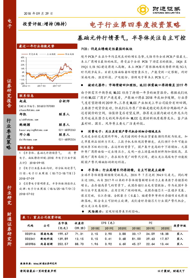 财通证券:电子行业第四季度投资策略:基础元件行情景气,半导体关注自主可控.pdf