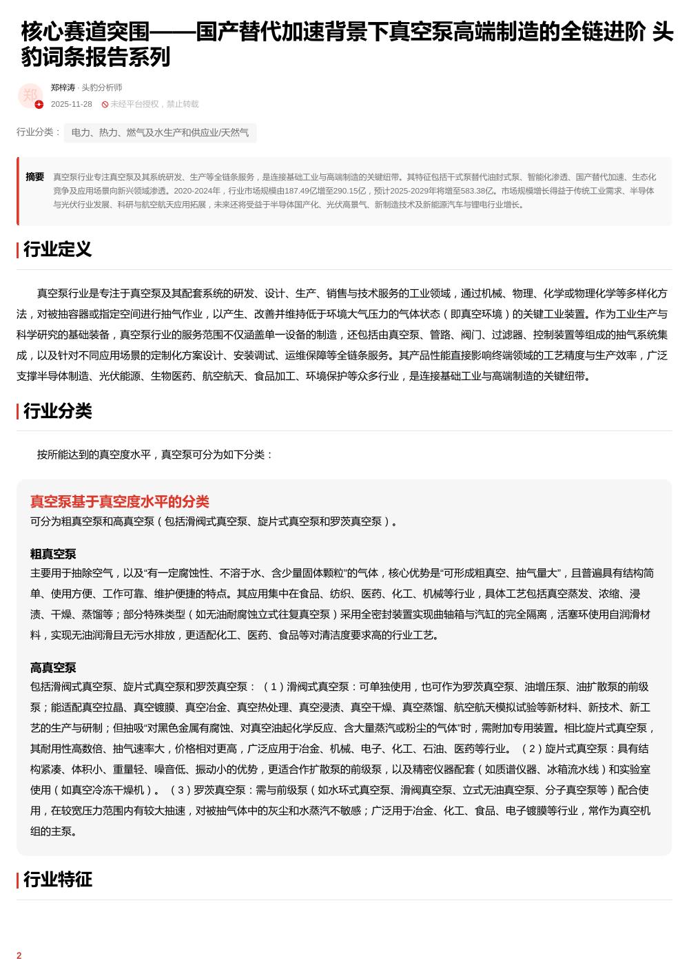 头豹研究院:核心赛道突围——国产替代加速背景下真空泵高端制造的全链进阶头豹词条报告系列.pdf